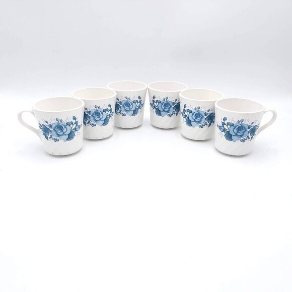 Corning Blue Velvet Mugs Set of 6 -Matching Corelle Creamer and Sugar Bowl