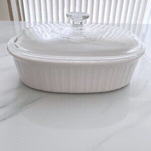 Corningware French White 02 Pyrex Dc1.5C Oval Casserole Dish with Glass Lid