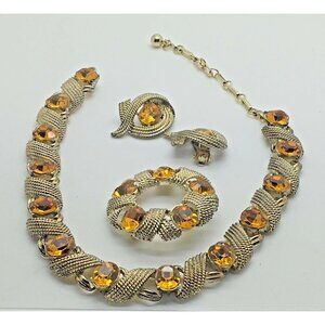 Coro Pegasus Parure Set Amber Topaz Necklace Bracelet Brooch Clip On Earrings