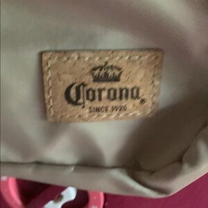 Stylish champagne waist pack featuring a Corona logo patch. Perfect for casual outings.