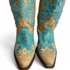 Corral Women's Leather Turquoise Tan Snip Toe Cowgirl Western Cowboy Boots 8 M