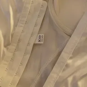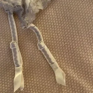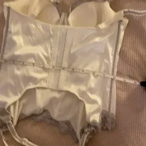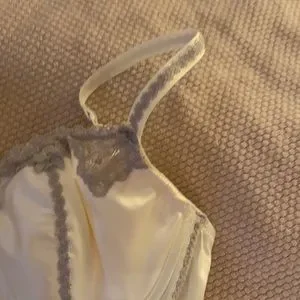 Purchased in Paris this is gorgeous off white satin with grey lace trim details