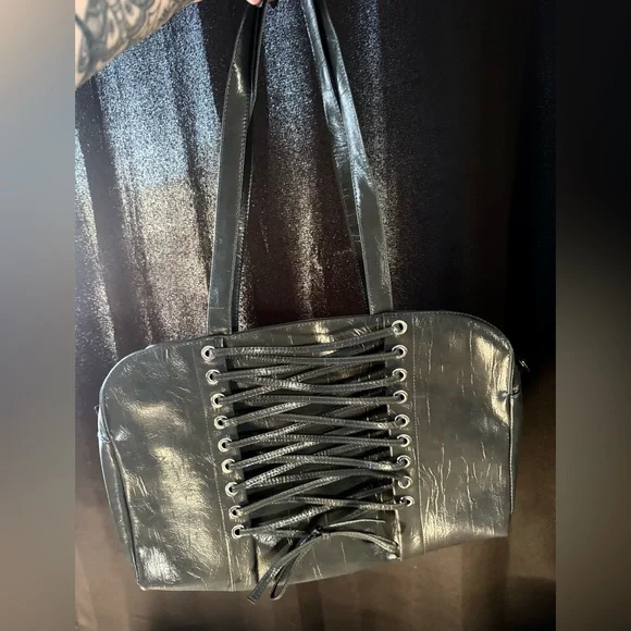 Never used, large and spacious bag. Dark grey colour with silver accents, faux leather. Paid $183 CAD asking $165.
