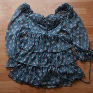 ✨ Romantic puff sleeve mini dress in a dreamy blue floral print
