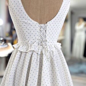 This is a gift, I prefer to gift my skill set when it's appropriate. A summer dress for my niece, that was created from the pattern I made for her wedding dress (pictures last, still finishing up currently). She is getting married this June 2025. The lace up back is designed specifically to allow room to move up & down about 2". Braless, built in soft cup construction.