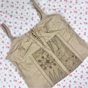 Stylish tan sleeveless top with unique patterns. Fairy core tan bustier top with embroidery detail at the front🧚🏻