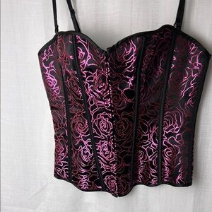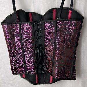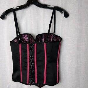 Corset,bustier,boudoir, pink & black,lace up,hook & eye, sexy,PTP 15” ,so 30-34