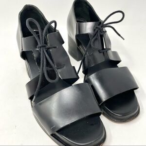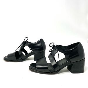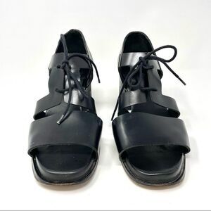 Cos Black Leather Chunky Heel Lace Up Sandals Size 40