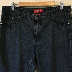 Cos Jeans Dark Navy Blue Ramie Cuffed Capri With Black Rhinestones Stamp