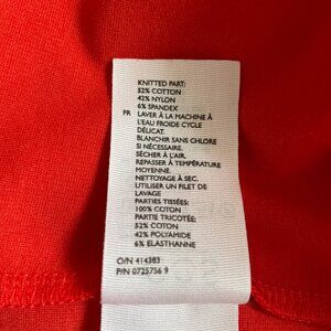 Colour varies in different lighting but it is more coral than red (dark coral - orange/red)