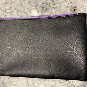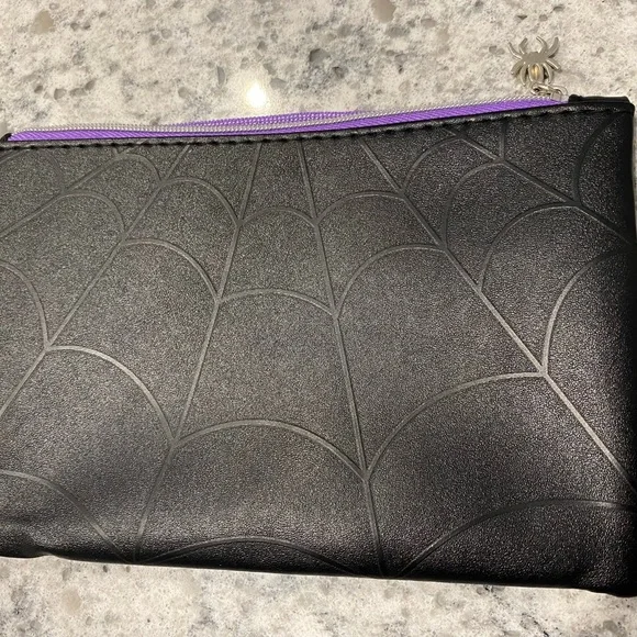 Black and purple spider web print cosmetic bag
