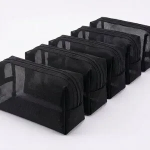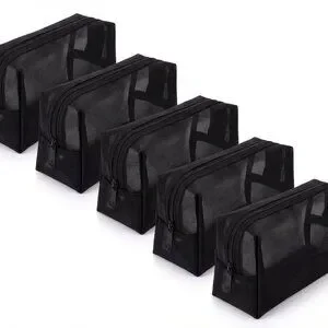 🔑 Keywords: black cosmetic bag, mesh makeup pouch, affordable toiletry bag, low-cost organizer, women’s travel case, budget storage bag
