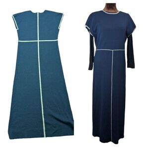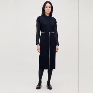 Cos navy wool blend midi dress grey contrast piping trim size M