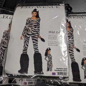 Wild zebra costume includes a catsuit with tail and ears headband. Furry Legwarmers not included.