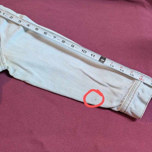 It is is very good condition. One very tiny stain on the right sleeve, the size of a pinhead. it is circled in picture #8.