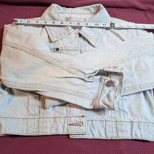 This jean jacket is an acid wash, distressed crop style by Costa Blanca. Ladies Size 4.