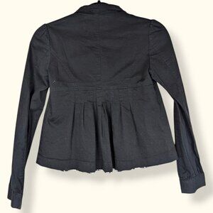 I wonder if the jacket was shrunk in the wash, as the buttonholes are tight for the buttons, and the piece fits better as a size 2 than a size 4. It's still very wearable, just a smaller version of what it should be. Please note, the jacket will be sold AS IS so please use the measurements.