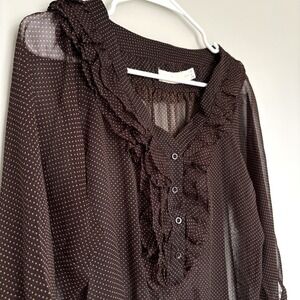 Costa Blanca Women Size XS Sheer Blouse Polka Dot Chocolate Brown Teacher Office