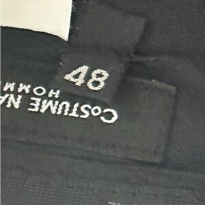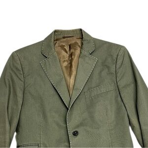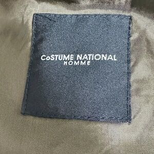Understated, impeccably tailored two-piece suit by Costume National Homme, renowned for its minimalist and avant-garde Italian design. This rare vintage piece features a utilitarian olive green cotton fabric with tonal topstitching, and a structured silhouette that merges classic menswear with Costume National’s signature edge.