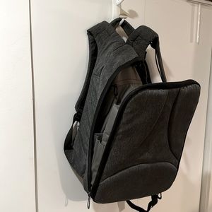 Beautiful fashionable backpack, in grey Eco Yarn, giving a great texture. Large front rucksack style pocket. Secure laptop compartment against the wearer's back fits up to 16 inch laptops.