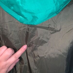 Tiny holes on the mid back and a few tiny holes in the back of the hood.