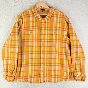 Vibrant yellow plaid shirt. Button-down style. Nice heavy weight, 100% organic cotton Long sleeves.