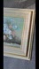 Beautiful cottage country floral oil painting with blue, pink, and white flowers in a cream frame.