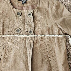 Cute cottagecore-esque jacket. Large buttons, pockets, 3/4 sleeves, lined. Has some bad catches around the left arm hole (on both the outside and lining) that can be seen from the back when worn. See photos.