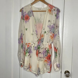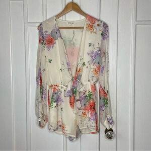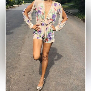 Cotton Candy LA romper cream floral print low cut with a peek-a-boo tummy sexy