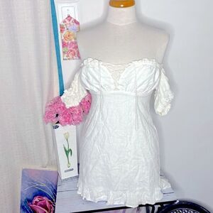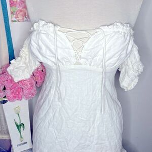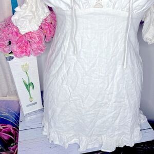 🌷 Cotton Candy LA🌷 White Linen Blend Cottagecore Babydoll Lace Up Dress
