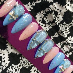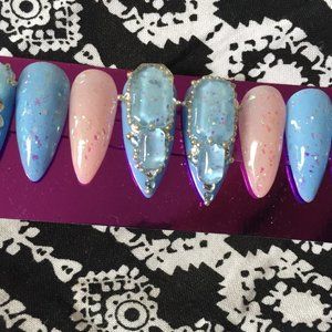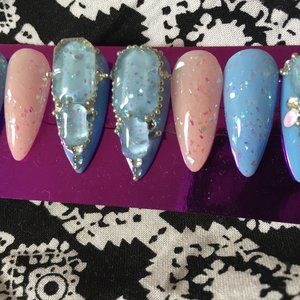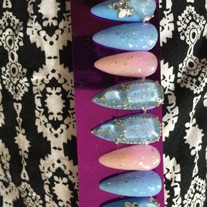 Cotton Candy n clear Glitter Gems press on nails Can be used with sticky pads for short time wear. Or glue on for up to two week hold . For best results,