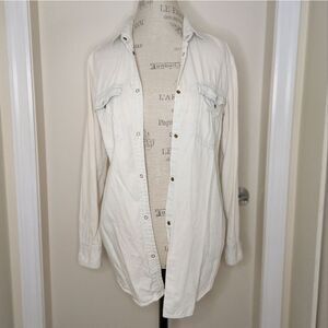 Ombré Pale Blue to Ivory White denim casual Longsleeve snap Buttonup Collared Shirt, by Cheap Monday!