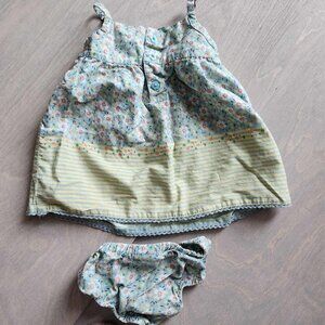 Cotton Dress set 0-3 months flower buttons 2 print set