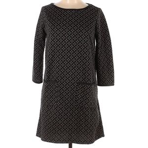 This pretty long sleeved dress has a polka dot pattern resembling abstract flowers. In great condition! It has front pockets which is always nice in a dress.