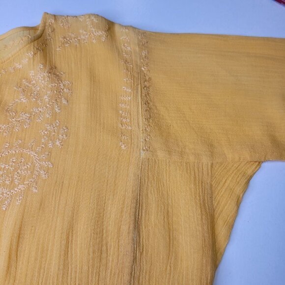 Cotton Embroidered Long Sleeve Yellow Saffron Indian Traditional Unisex Top XL