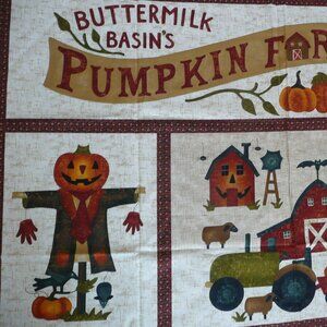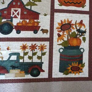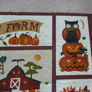 Cotton Fabric Panel Pumpkin Farm Fall Autumn Quilting Sewing Harvest