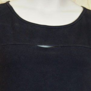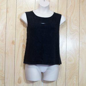 Details: Black tank with Peak-a-boo Slit and seam detail on front. Wide shoulder straps.