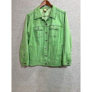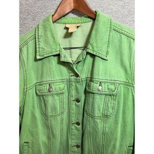 Cotton Ginny Jean Jacket Women Small Pocket Denim Button Up Long Sleeve Green