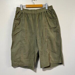 Cotton Ginny Olive Green Textured Elastic Waist Shorts Size Small