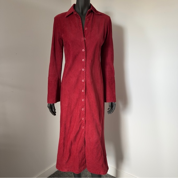 Cotton Ginny Red Corduroy Button Front Midi Dress Size 5