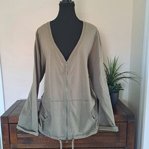 Cotton Ginny Zip Front Cardigan Top Womens Medium Green Oversized Casual