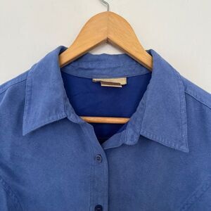 Cotton Ginny, blue button-down shirt, sueded fabric, soft blue shirt, women's blouse, button-up shirt, casual shirt, sueded texture, comfortable fit, relaxed style, versatile top, breathable cotton, lightweight shirt, everyday wear, casual chic, classic shirt, spring and summer fashion, laid-back look, easy layering piece, denim alternative, simple elegance, stylish casual, easygoing top, modern wardrobe essential, timeless button-down, polished yet relaxed, versatile blue shirt.