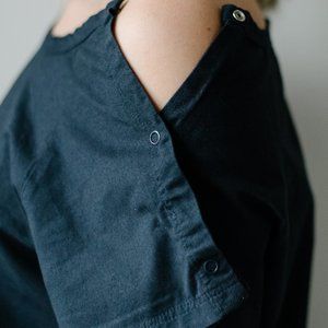 - Snap buttons on the shoulders to allow you to easily open and close for examinations, breastfeeding, and skin-to-skin time