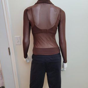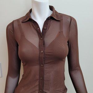 Cotton: On - Mason Mesh Button Down Long Sleeve Top. Rich Chocolate. Size XXS. NWT