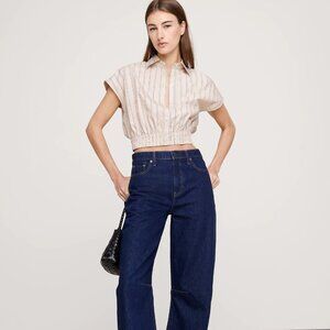 Wedge Fit: Relaxed through shoulders and chest with a fit that tapers towards the hem. Super-cropped.