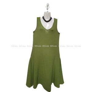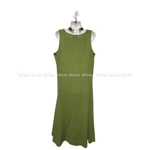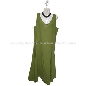 Green Loose Fitting Cotton Sleeveless V-neck Midi Long Dress
