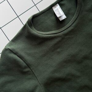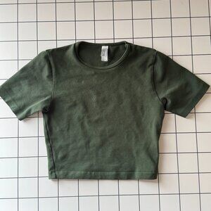 Los Angeles Apparel Cropped Cotton Spandex tee - snug fitting, great as activewear or casual styling. Forest green.