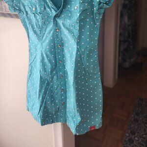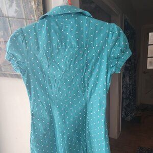 Cotton Vintage Soda-Jerk style blouse collar form-fitting ruffle sleeves Sz S
