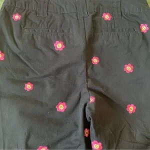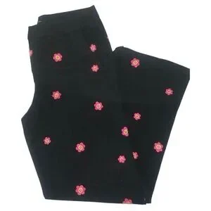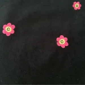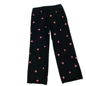 100% Cotton Wide-leg Leg Pants. Happy Smiley Face Flower Embroidered twill, straight/wide-leg jean trousers(see measures). Wide style belt loops. Two front and back pockets. Personality Party Pants with a modern twist by forever21. Black, Pink. Size Large.