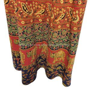 Multi colors of dark blue, reddish orange and green with Elephant and seamless flower motif